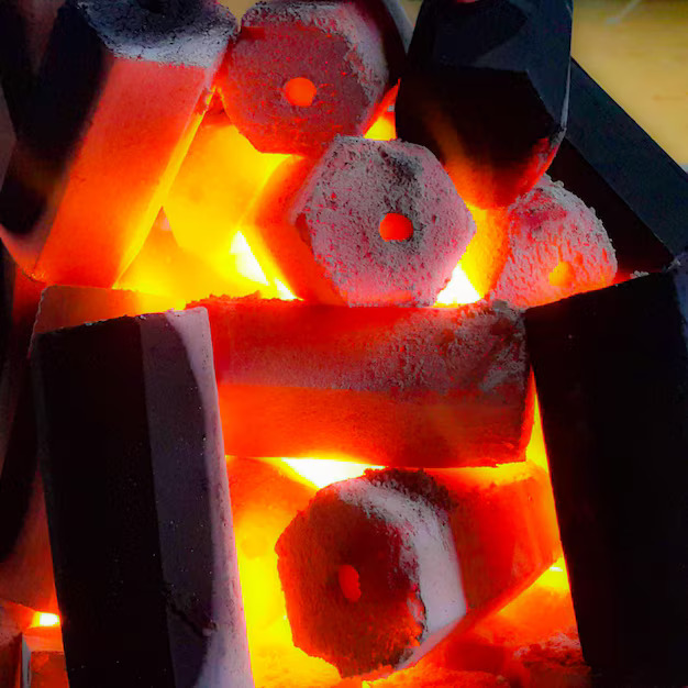 • Charcoal briquettes are compact blocks with standard size which burns evenly and stay gleamed for prolonged period of time.